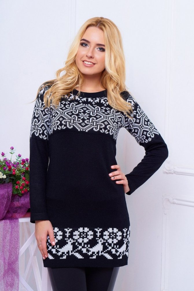 Не обязательно искать описание вязания туники. За основу получится взять любой свитер или джемпер. Работают по указанному принципу. Только изделие удлиняют.