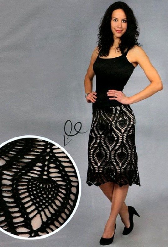 - Вязанное крючком полотно не мнется, поэтому юбка всегда выглядит аккуратной и свежей;