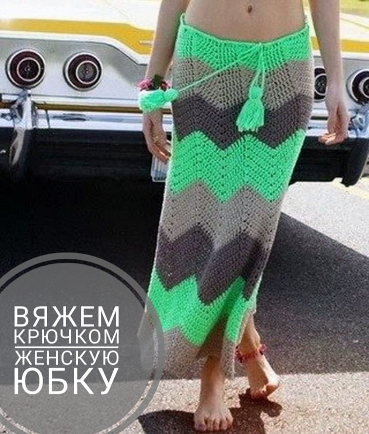Верх юбки оформить несколькими рядами из столбиков с 1 накидом и воздушной петлей между ними, через которые продеть вязаный шнур для фиксации изделия на талии.