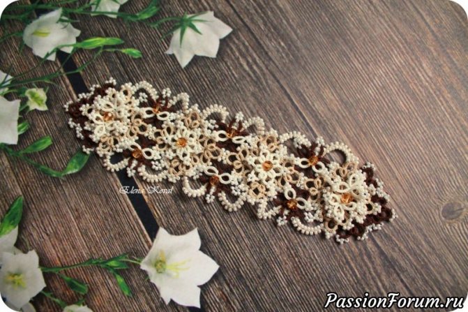 Биниль- техника имитации кружев фриволите в бисроплетении, Фриволите- челночное кружево(плетется челноками) пришло в Россию из Италии, там оно называется ocho- глазок, анкарс – сочетание кружева фриволите с бисером и бусинами