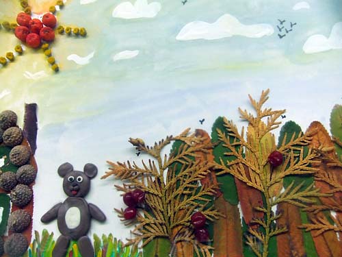 Аппликация с использованием сухих листьев, веточек, ягод, пластилина