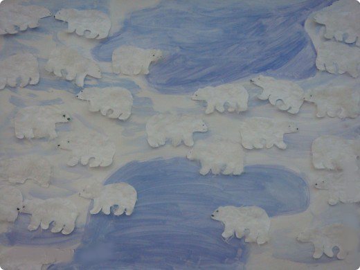 - Сюжетная и пейзажная композиция — изобразительная форма повествования о каких-то событиях, объединённых общим сюжетом, например, «Умка и его друзья», «Медведица с медвежатами», «Мишка ищет место для зимовки», «Маша и медведь», «Мишка в лесу» и т. д.;