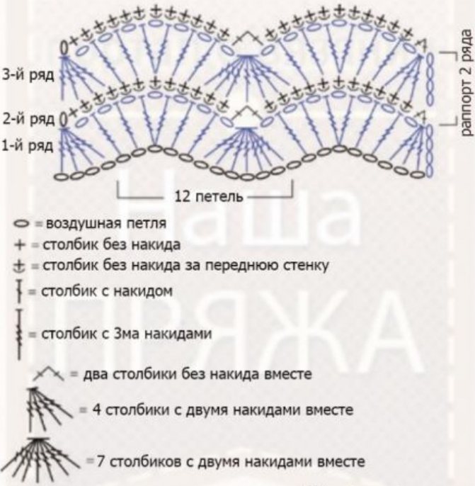 Вяжем узор Веер крючком: схемы с описанием работы