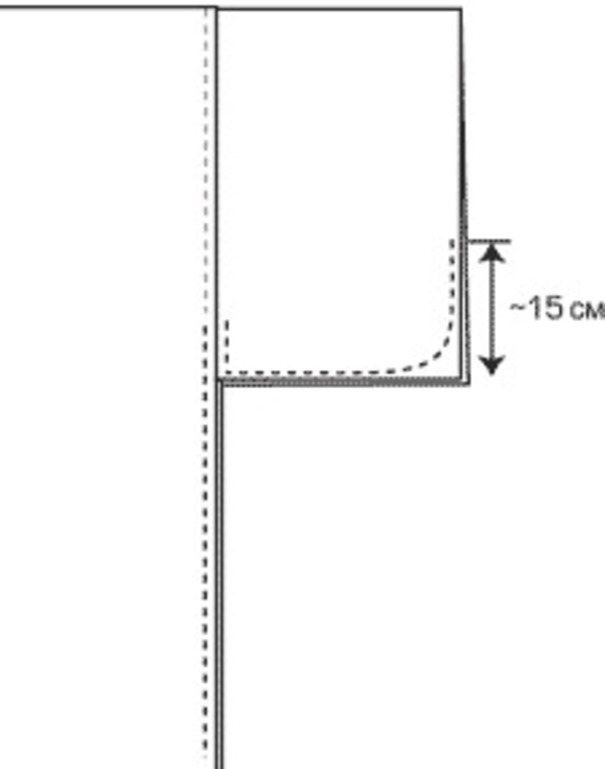 Размер перпендикуляра зависит от ребенка, которому шьется халат. Чем меньше мальчик, тем эта линия короче.