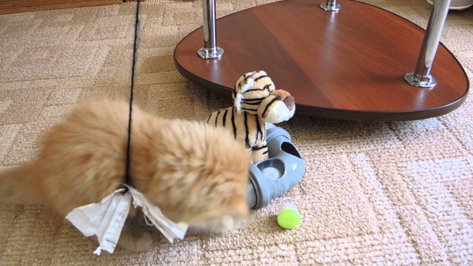 Хозяин должен периодически менять котёнку игрушки и принимать участие в совместных играх