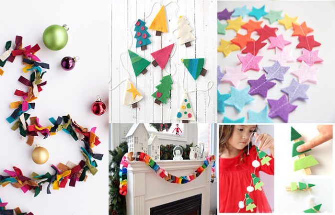 Сделать красивую, яркую и функциональную гирлянду из фетра своими руками достаточно просто, если будут использоваться дополнительные декоративные материалы: