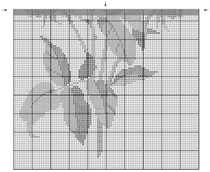 Как обычно, мы даем два варианта схемы вышивки букета роз: техническая и цветная. Скачивайте любую, с которой вам удобнее работать. Так как мотив большой, схема состоит из двух частей, которые вам нужно будет соединить вместе.