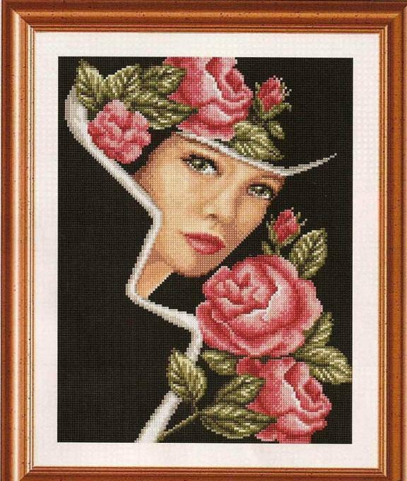 Для вышивки крестом портреты девушек с розами очень благодатная почва, потому что красота готовой работы подгоняет мастера вышивать все быстрей и быстрей.