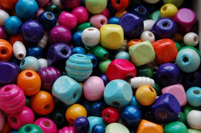 Важно! Для занятий таким видом ручного творчества с детками следует выбирать крупные бисерины – такой материал будет удобнее держать в руках, и поделки получатся большего размера.
