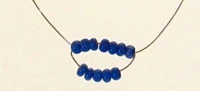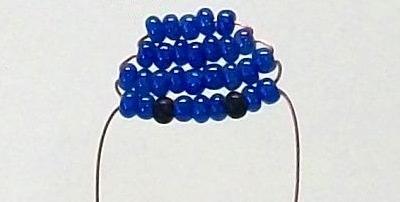 Третья линия состоит из низки в девять бисеринок синего оттенка.