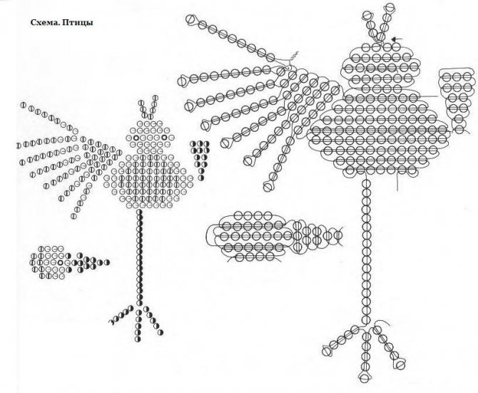 - Птица формируется с головы, согласно схеме. Добавочный пятый ряд формируется, как и в случае с обыкновенным попугаем.