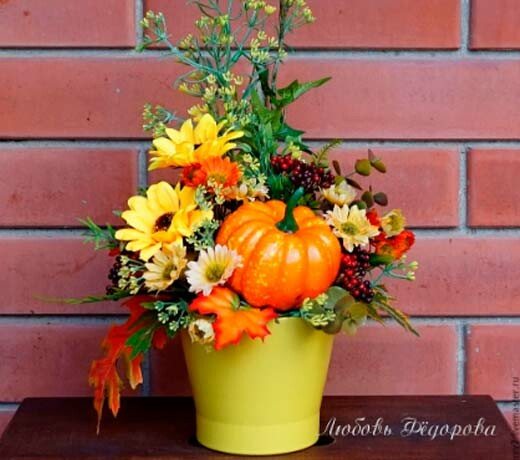 Мастер – класс о том, как сделать вазу и экибану с тыквой и цветами