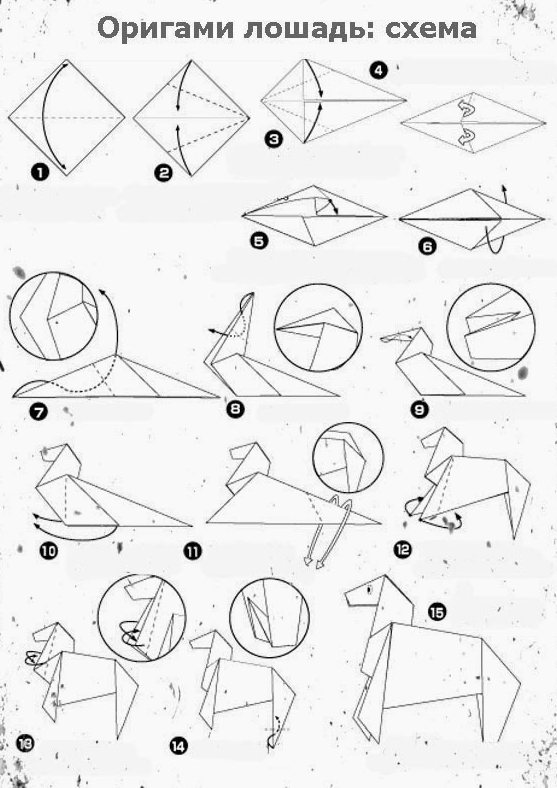 Как мы уже говорили, оригами – это японское искусство. Чтобы сделать лошадь своими руками, нам нужно взять ножницы и альбомный лист. Давайте посмотрим пошаговую инструкцию.