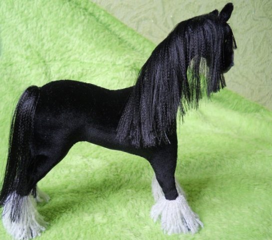 Крупную лошадь можно сделать из проволоки, ткани и ниток. Из проволоки делают скелет лошади, наматывают на него ткань и закрепляют ее нитками, тщательно обматывайте всю ткань так, чтобы ее не было видно. В конце, можно пришить копыта и приделать гриву и хвост, используя волосы или тонкую нитку.