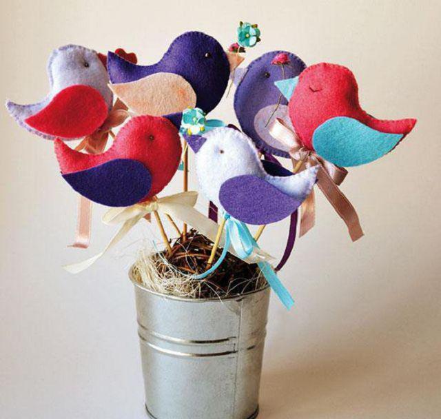 Очень милые поделки получаются из ткани. Ниже описана процедура по созданию птички из фетра.