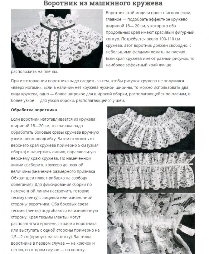 Для того чтобы пошить подобный воротник надо уметь пользоваться швейной машинкой и подобрать уместные кружева.