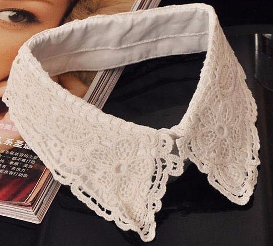 Классический вариант любого воротника – это белая ткань, обшитая легким кружевом. Чаще всего такие модели называют школьными, но при большом желании их можно носить даже в офис.