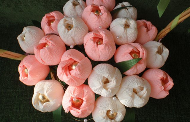 Мастер-класс по изготовлению тюльпанов из гофрированной бумаги и конфет