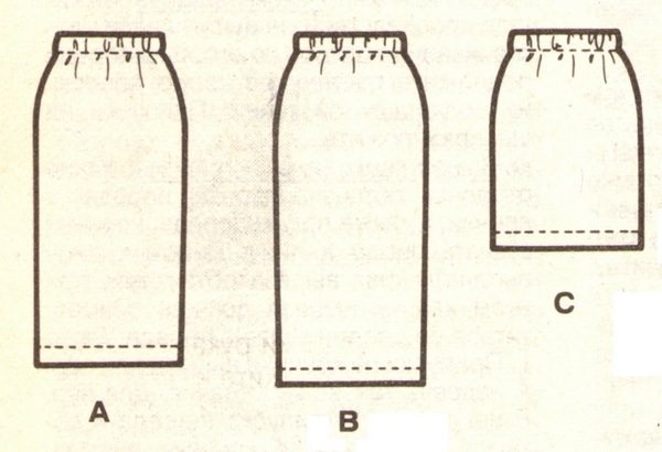 - Чтобы наметить желаемую длину, сантиметровая лента прикладывается к бедру и опускается ниже колена. Если юбка будет выше колена, то высока вероятность того, что девушка замёрзнет.