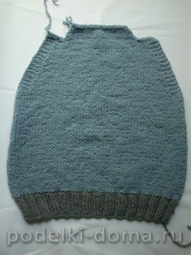 Продолжаем вязать платочной вязкой, пока спинка будет составлять — 25 (27,30, 33, 37, 41) см от начала.