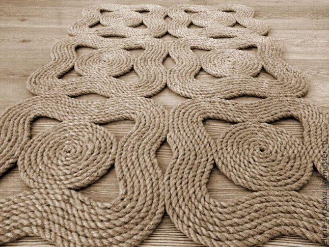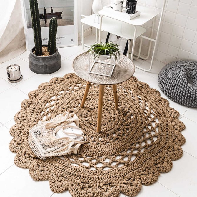 Оригинальные коврики, связанные из джутовой нити, могут понравиться романтикам или поклонникам восточного стиля.