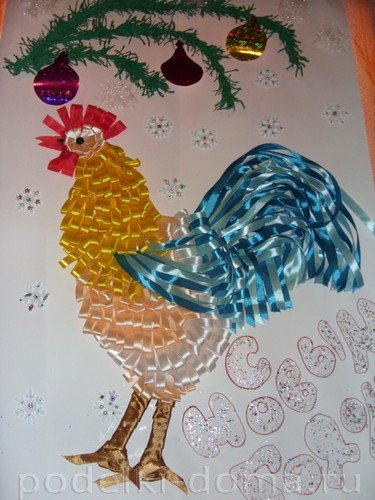Петушок — аппликация из лент