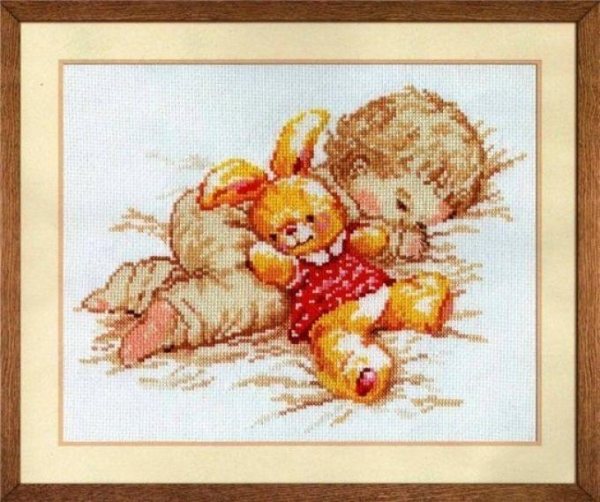 Как вариант, вы можете вышить четверостишие, которое будет своеобразным пожеланием малышу. И эта вышитая открыточка может в рамочке висеть над кроваткой ребенка, либо просто висеть на стене в детской. Помимо стишка можно вышить забавных зверушек, сказочные растения, звездочки и луну или пирамидки и другие детские игрушки. Словом все, что ассоциируется с детством и младенчеством.