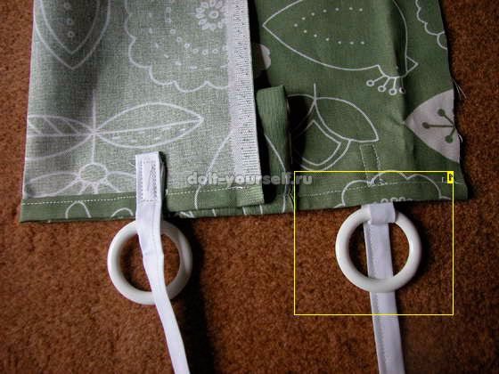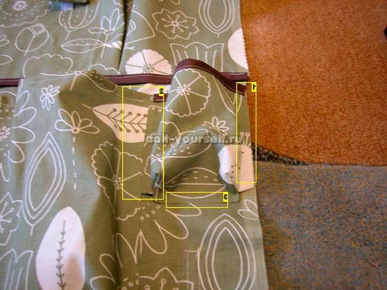 Посмотрите, где проходит вторая половина липучки и приколите ее на этом месте, возьмите середину зигзагообразной складки и прихватите ее на этом месте.