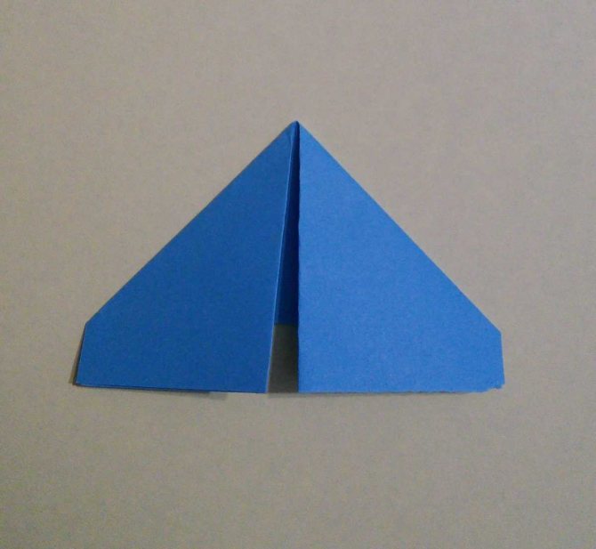 - Итак, квадратный материал сгибается пополам, затем сгибаются боковые углы фигуры.