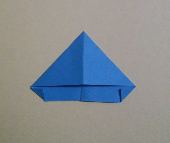 - После этого нужно аккуратно расплющить «карманы» получившейся фигуры, сгибая получившийся треугольник.