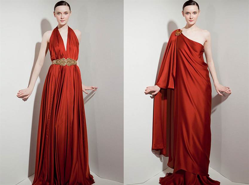 Современные дизайнеры любят разнообразить античные платья различной длиной, воланами, контрастными цветами, декором из пайеток, бус, цепочек. Главное — это женственные платья, необыкновенно красивые и романтичные.