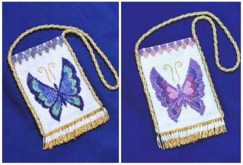 Вы можете сплести изделие для телефона прямоугольной формы, как показано на представленном фото или сделать нижнюю часть в виде угла, как изображено на схеме. Можете украсить чехол на ваше усмотрение двумя бабочками с разных сторон, где они будут отличаться только цветом бусин. Если не желания, тогда рисунок оставьте только с одной стороны, а вторая пусть будет просто белой.