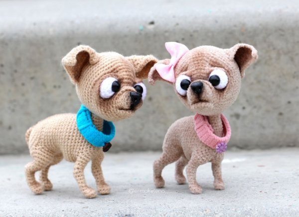 Варианты собак, изготовленных при помощи крючка, многочисленны и разнообразны, размеры их могут варьироваться от миниатюрных амигуруми до полноразмерных игрушек, от щенков определенных пород, до фантазийных образов. Можно создавать лежачих и сидячих собак, или антропоморфных песиков, одетых в эксклюзивные наряды. Какая бы игрушка ни задумывалась в итоге, общие правила создания, набор необходимых материалов и инструментов всегда будет примерно одинаковым.