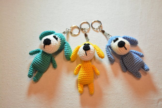Брелки на ключи тоже изготавливают в технике амигуруми