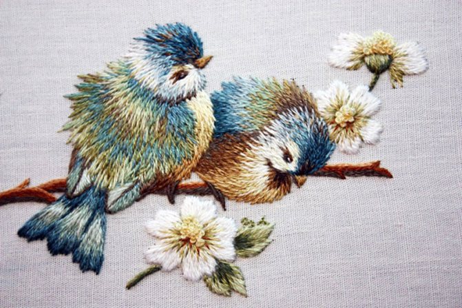 Стежок выполняется косым и без настила. Для такой глади понадобятся цветные нитки «Мулине» либо шелк. За счет более темной вышивки в центре и светлой по мере приближения к краю вы сможете сделать картинку объемной и сложной.