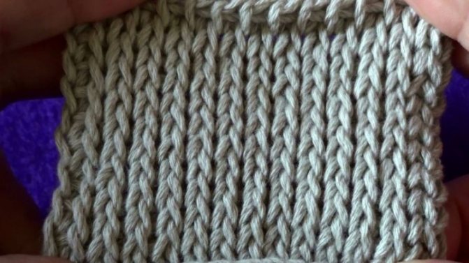 При бабушкином методе вязания полотно кажется более рельефным, этот эффект создается за счет выпирания левой половинки петельки.