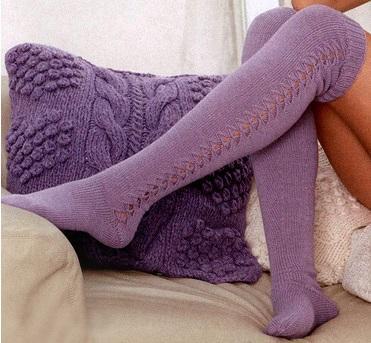 Вы можете экспериментировать с этой схемой, совершенно не обязательно вязать весь чулок лицевой вязкой. В интернете множество фото красивых изделий, которые можно взять за основу, зная общие принципы. Вязаные чулки – это по-домашнему уютно и привлекательно.