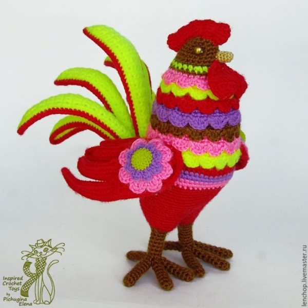 Прелестный петушок по описанию Татьяны Остроумовой. Как его вязать вы найдете на портале, посвященном амигуруми. Схема петушка пользуется популярностью, в сети вы можете найти большое количество игрушек, связанных по ней.