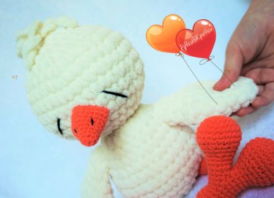 Понадобится: пряжа Травка (желтая), крючок №1.5, наполнитель и гранулят, пластика для клюва, глазки черные.