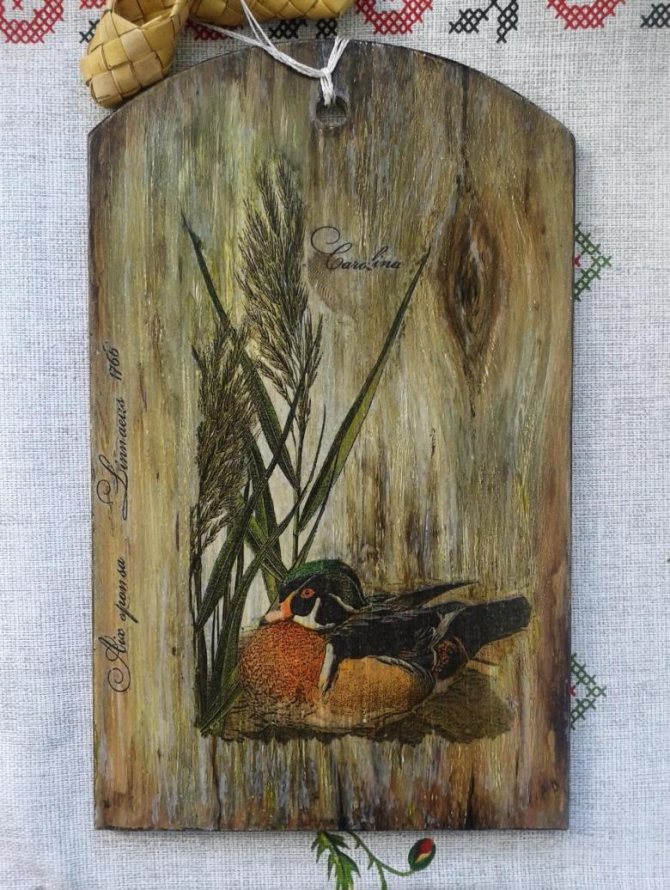 Из доски прямоугольной формы вырезаем табличку, как показано на фото.