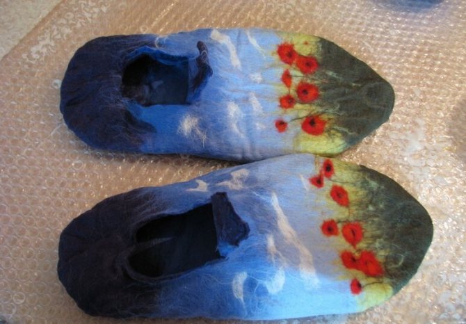 Для производства домашних тапочек в технике валяния, как правило, используется мокрый метод.
