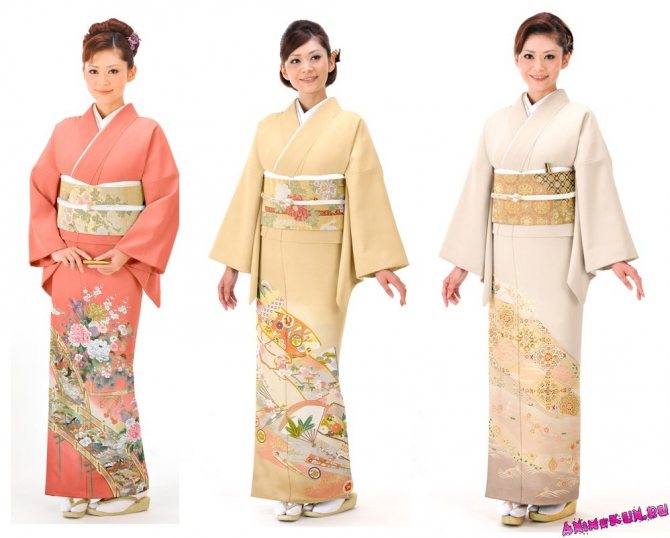 У каждого из кимоно свое название. Бывают такие разновидности кимоно: