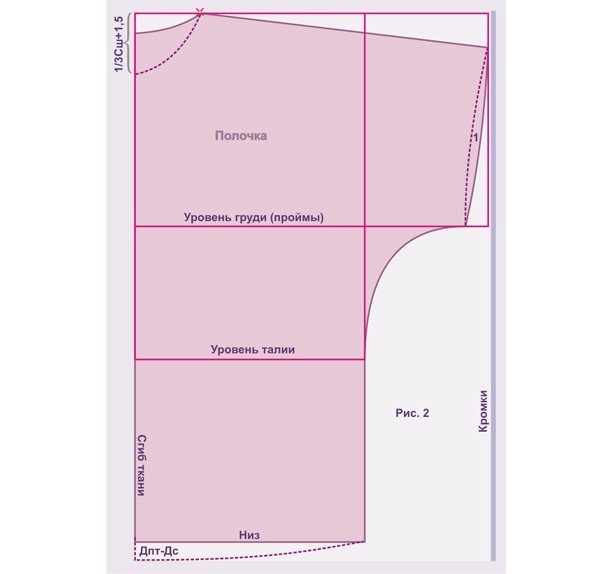 - Также от исходной вниз отмеряется Сг * 1/3 + 10 сантиметров — уровень груди;
