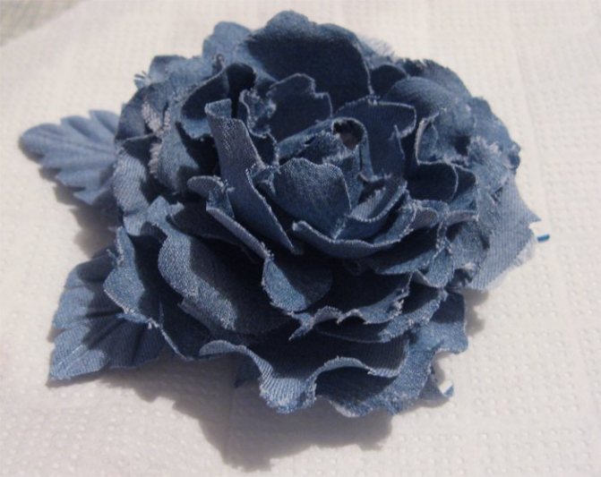 Шаг 8. Вот как должен выглядеть цветок из джинсовой ткани с изнаночной стороны.
