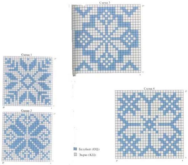Узоры-пушинки в норвежском жаккардовом стиле. Такие рисунки подойдут для украшения тёплого зимнего свитера, колготок, юбки. Цвет изделия должен быть контрастным цвету самой вещи.