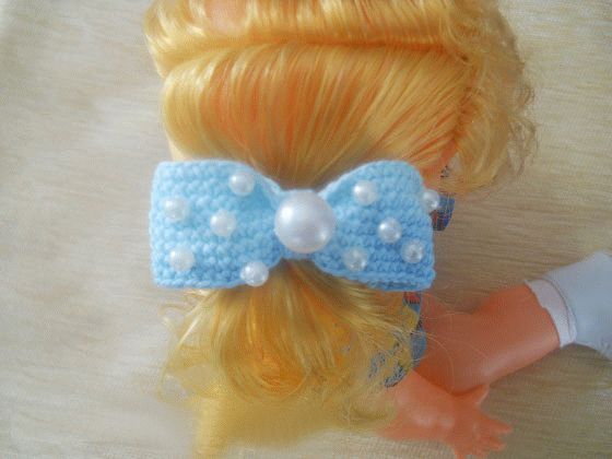 На этот раз я решила украсить их прически и связала резинку для пучка