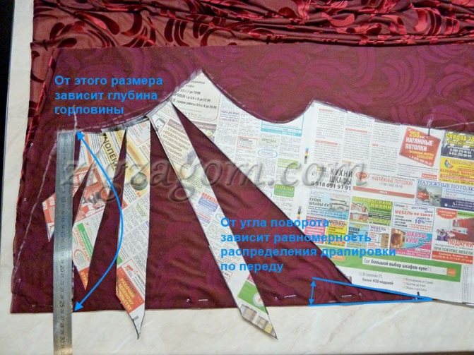 - от точки лифа замеряется 4-6 см и опускается прямая до линии проймы;
