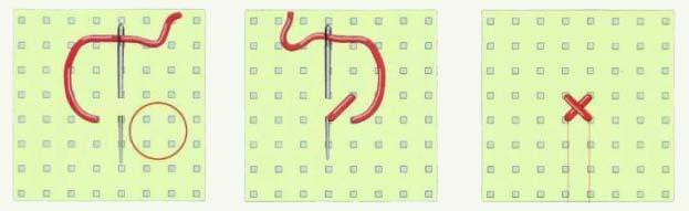 Работая этим способом, задняя часть вышивки напоминает совокупность коротких и прямых черточек, идущих в одном направлении.