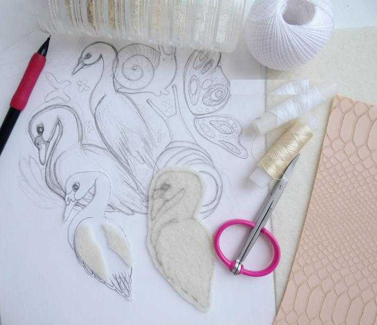 Обратная сторона лебедя вырезается из дермантина и пришивается нитками к основе.