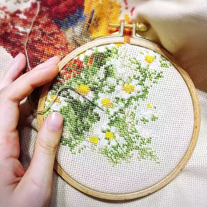 Как вышивать крестиком ромашки